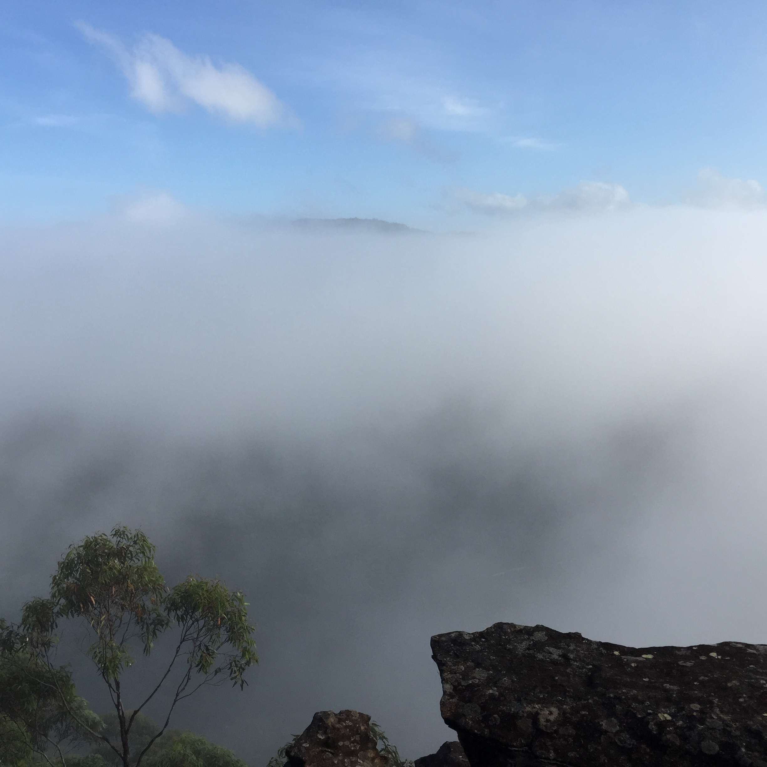 Finally arriving at our destination (The Gross Valley Lookout) we could hear the river loudly from below in the valley (probably around 1000 metres below!), but much of the other side and the valley itself was obscured by morning mist.