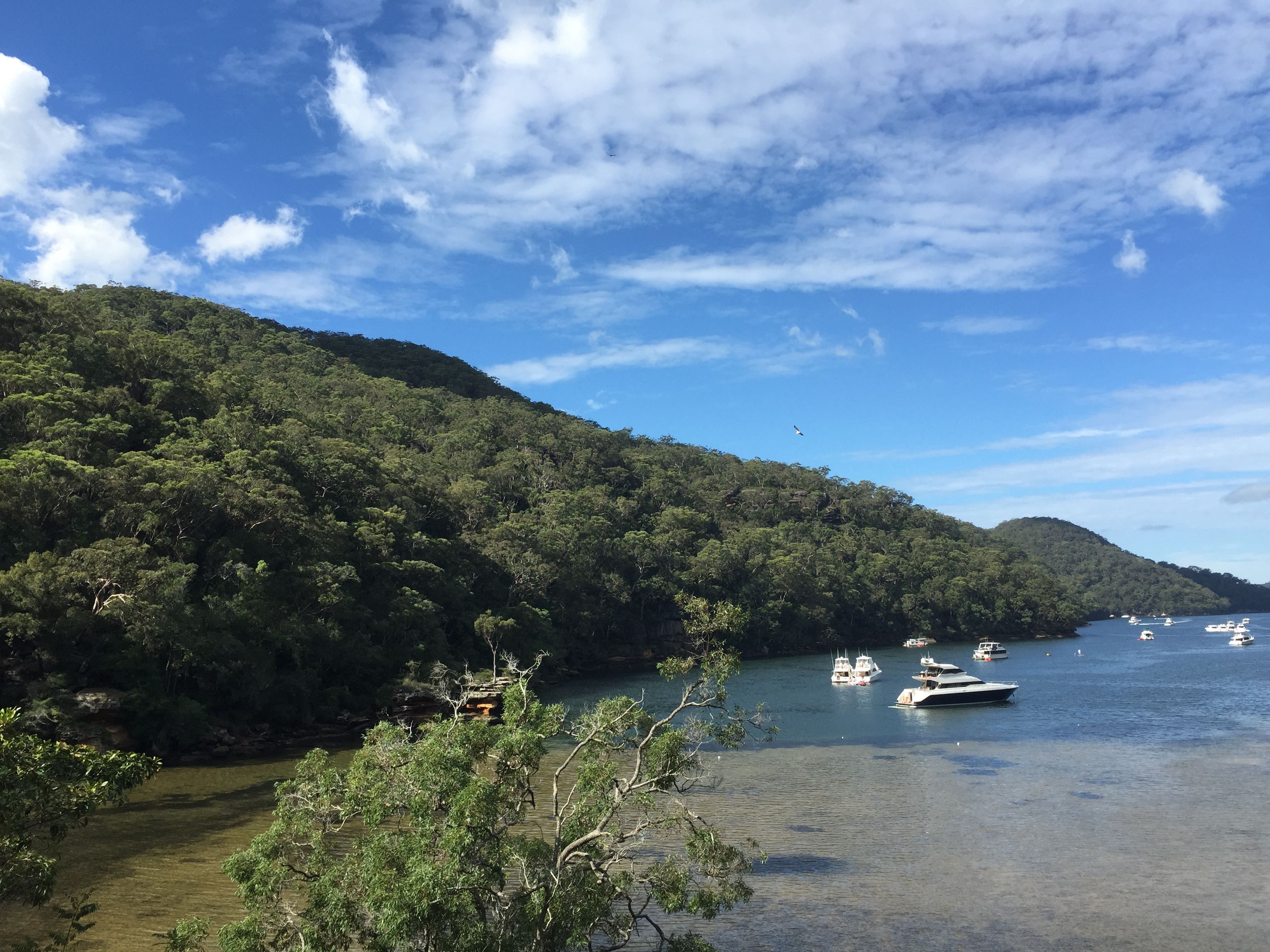 Blessed with the sunshine on this Easter Sunday, we went down to Jerusalem Bay through the magnificent changing landscape of a hanging swamp full of flowering tee trees, through the wet sclerophyll with pink croweas and nearly flowering darwinias. Then the track descends through rain forest with high Turpentine and coachwood trees. Reaching the “nose” of Jerusalem Bay we were greeted with a pair of sea eagles circling above (one can be seen in this photo just above the parked boats). As we watched a wedge tailed eagle plummeted from on high separating the pair of sea eagles: drama in the skies! It was a wonderful walk both there and back.