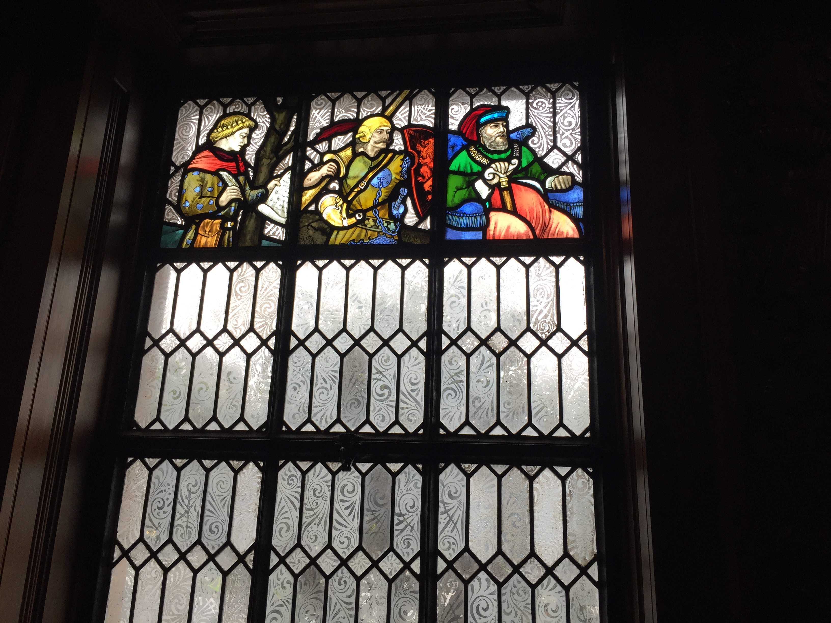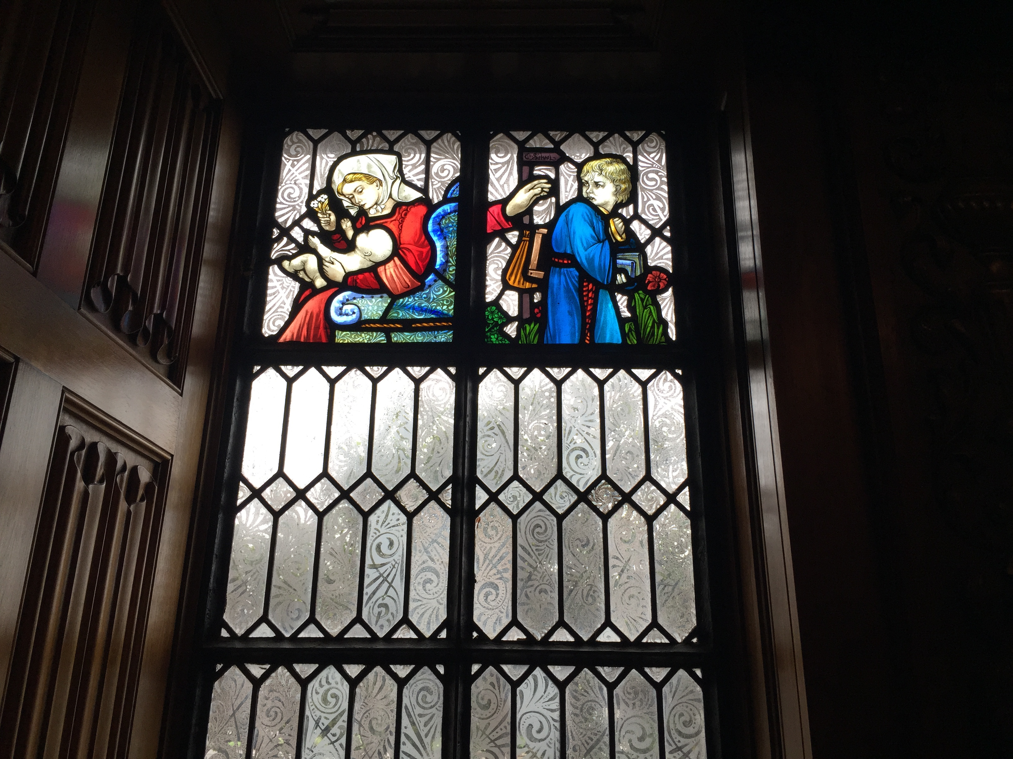 And here are the amazing stained glass windows that depict those wonderful lines spoken by Jacques in As You Like It about all the world being a stage and the seven ages of man: