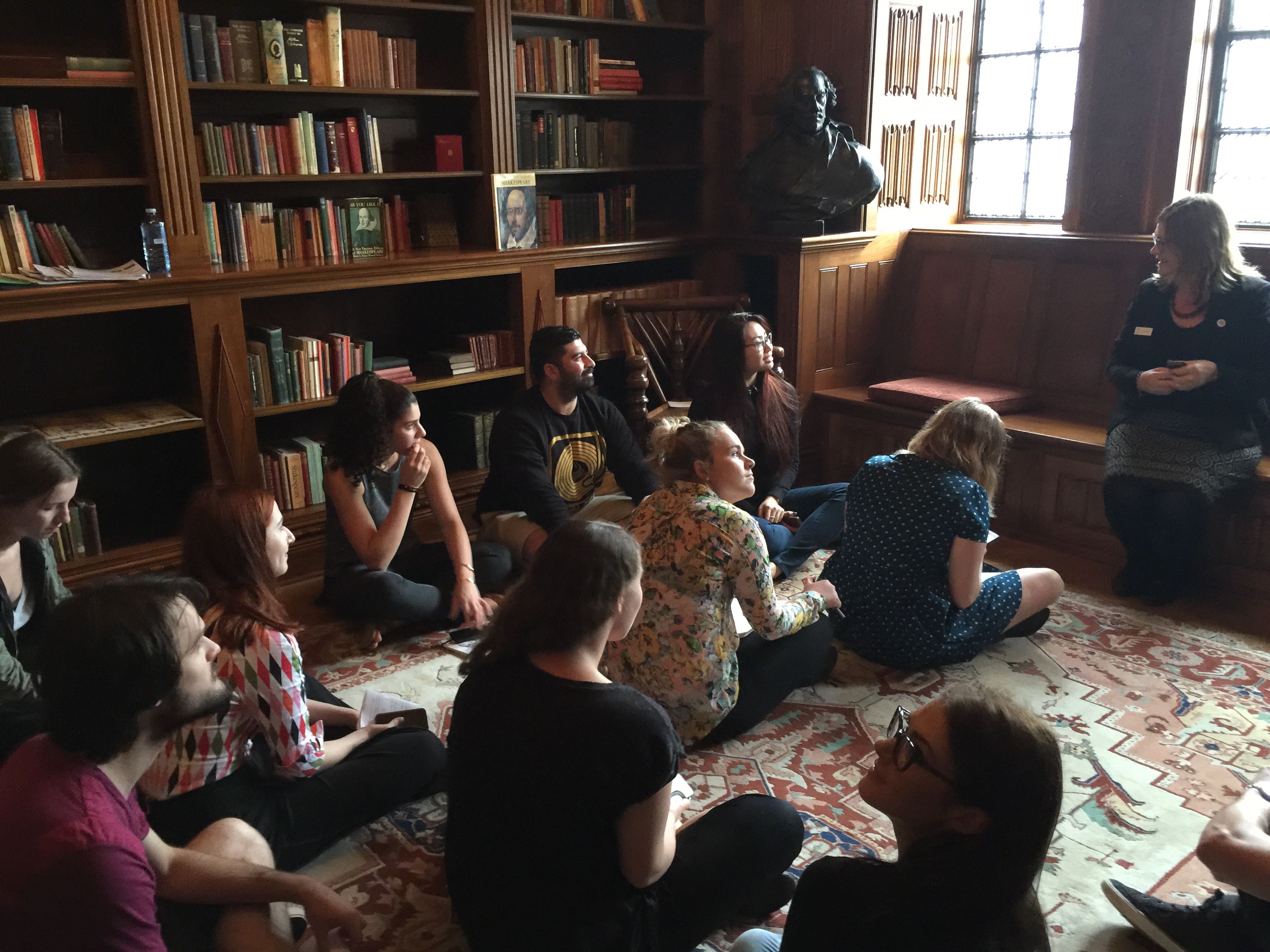 Here is a bunch of students, listening to the complex story of the room’s creation