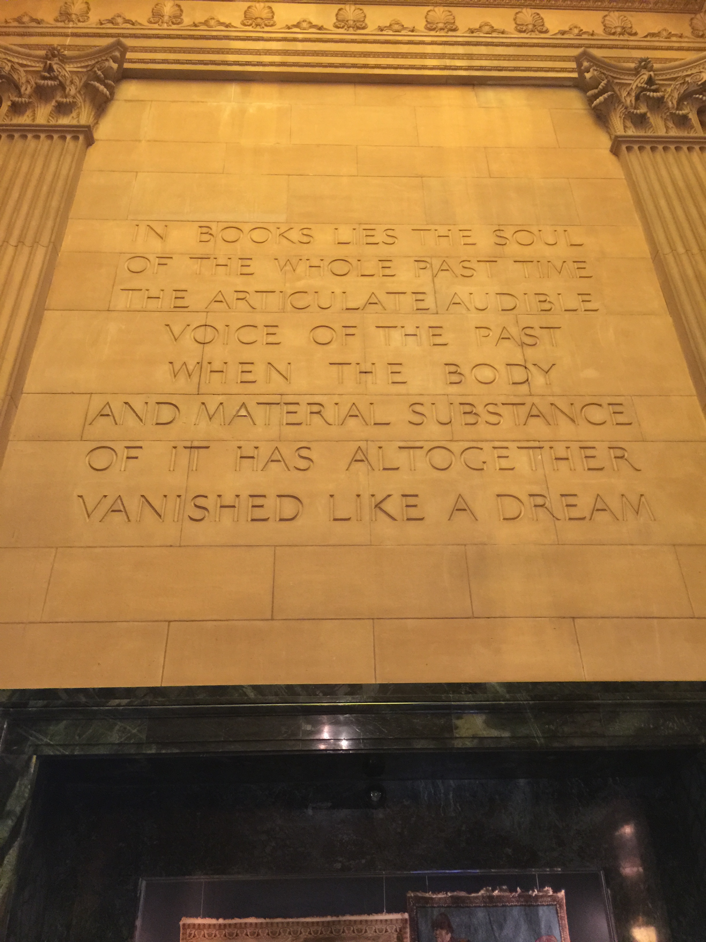 At the State Library Today, we also genuflected in front of these amazing words from that extraordinary 19th Century wordsmith, the historian Charles (to whom Dickens dedicated his Hard Times). To anyone who still reads and benefits from the written word, these words carved in Sydney sandstone inside the vestibule to the Mitchell Library will have a vibrant, resounding, soul-stirring resonance (click on the image to see it writ-large):