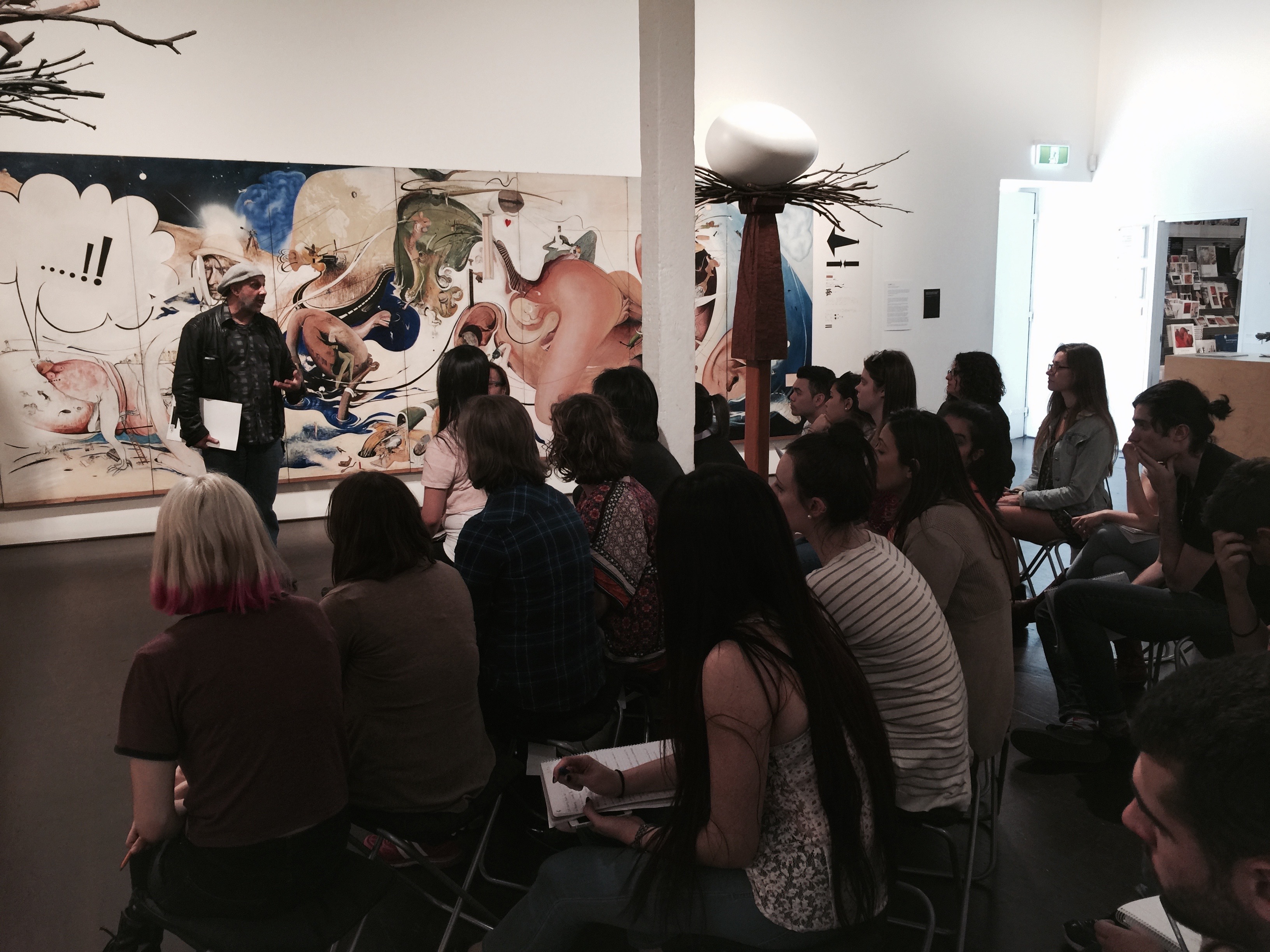 To make good sense of this, you do have to see this in the context of the whole painting (which can be observed at the Brett Whiteley Studio). For reasons of copyright and permissions, no more than this segment -as a close-up- can be shown here. If and when you do get to the Studio you will have to get down on your knees to find this iconic “grain” which is barely visible to the naked eye. Thanks to Alec George (Co-ordinator of the Brett Whiteley Studio) we were given a wonderful cultural and historical tour through all the components of this massive art work. Here is Alec in the throes of a passionate explanation of one of the many sections of Alchemy. Alec has an encyclopaedic knowledge of every “grain” of this painting. It was illuminating to have such a knowledgeable guide (thank you Alec!- & Mark for helping organize this event!):
