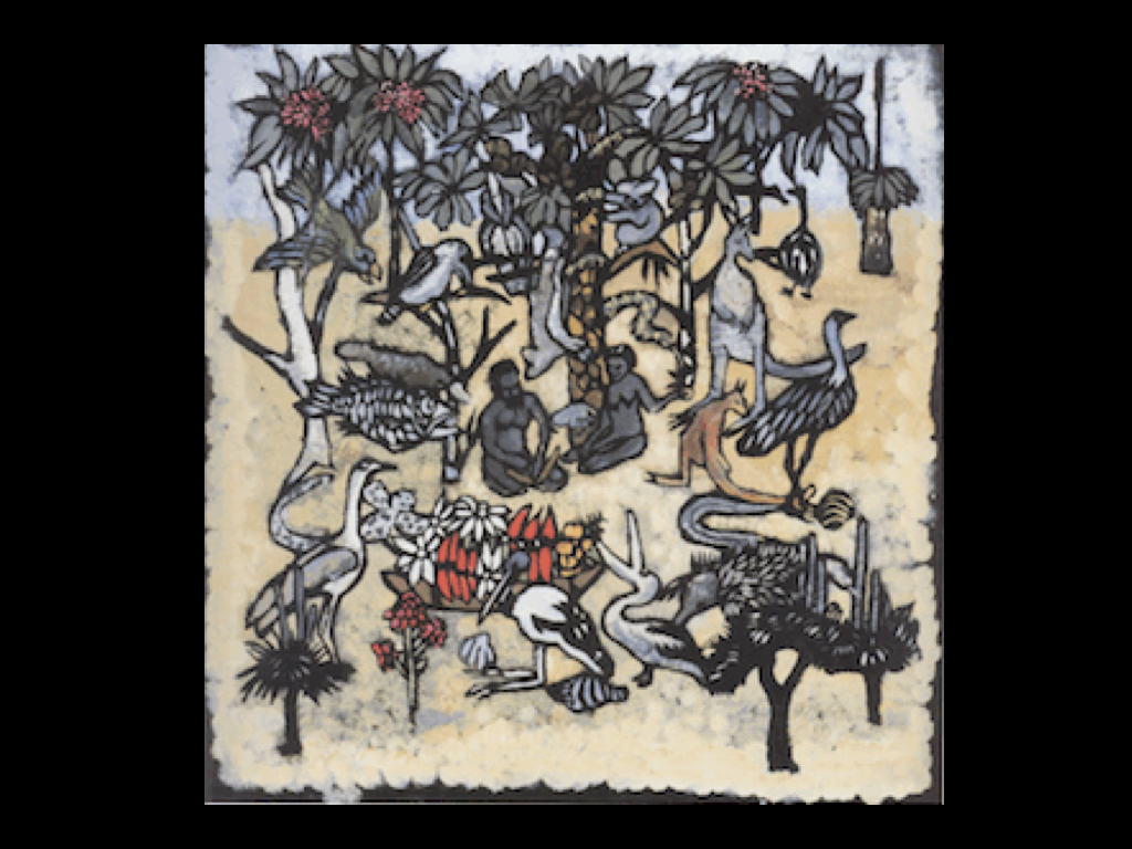 Margaret Preston may have been roasted on a spit for daring to present Adam and Eve as an Aboriginal couple in offering this painting to the Blake Prize in the early 1950s. How dare one assume that our forefathers had anything to do with Aboriginality!!! Thus spake the right-wing factions of our country