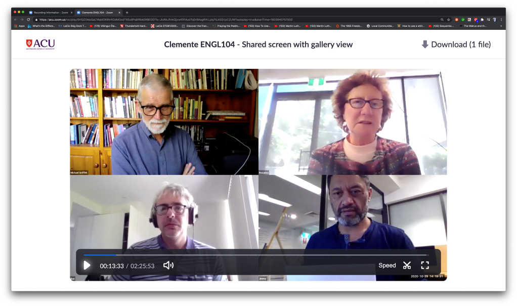 What a wonderful closing session we had to day with Ian, Wei, Ben, Jimmy, Rosanna and myself, discussing the themes and ideas in these two powerful stories by two of the world’s best contemporary story tellers: African American Alice Walker and Australian surfer Tim Winton. Listen in to the lecture here: